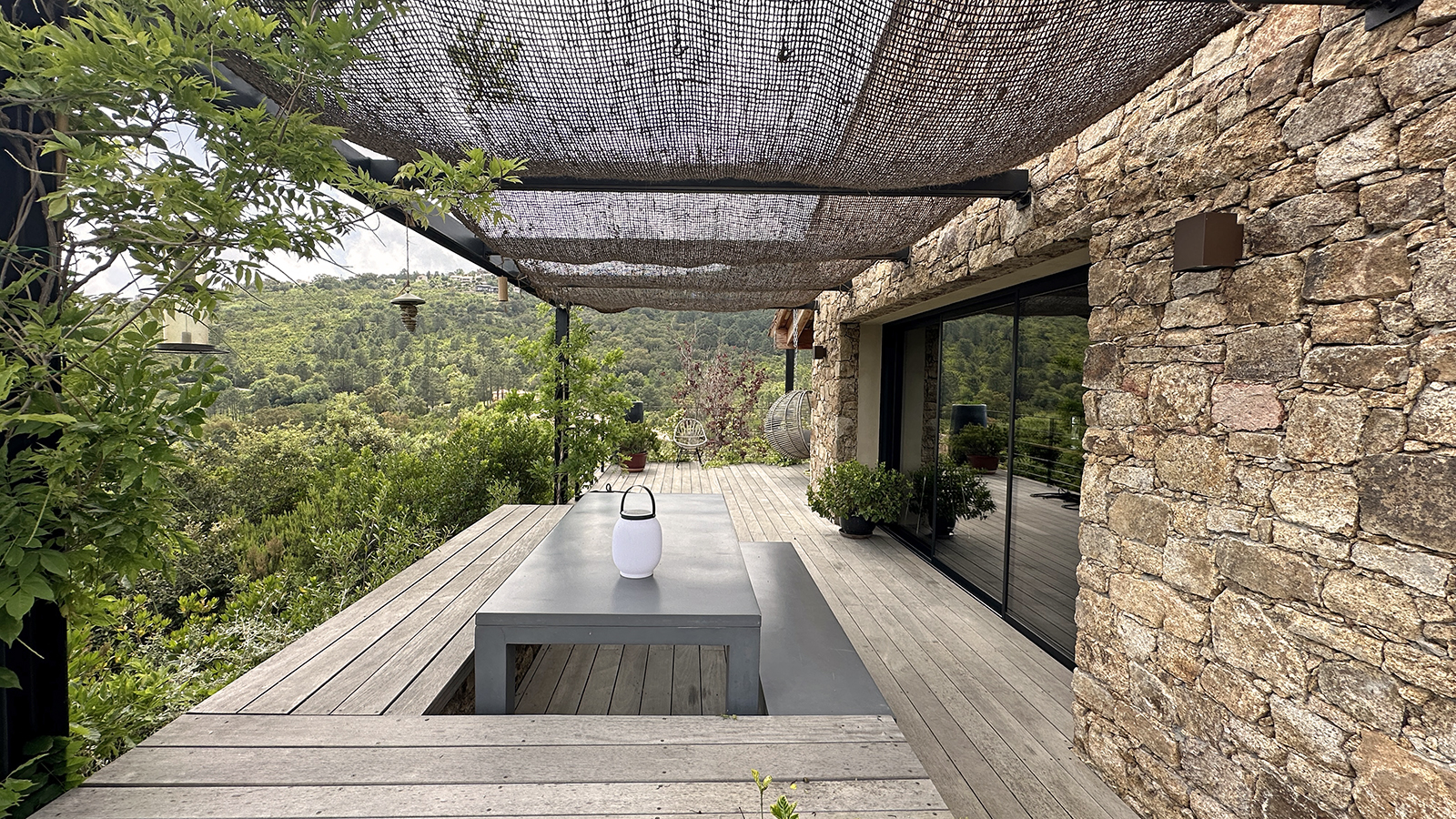 Fauteuils et balançoires complètent cet aménagement et incitent à la relaxation ou à une douce sieste.